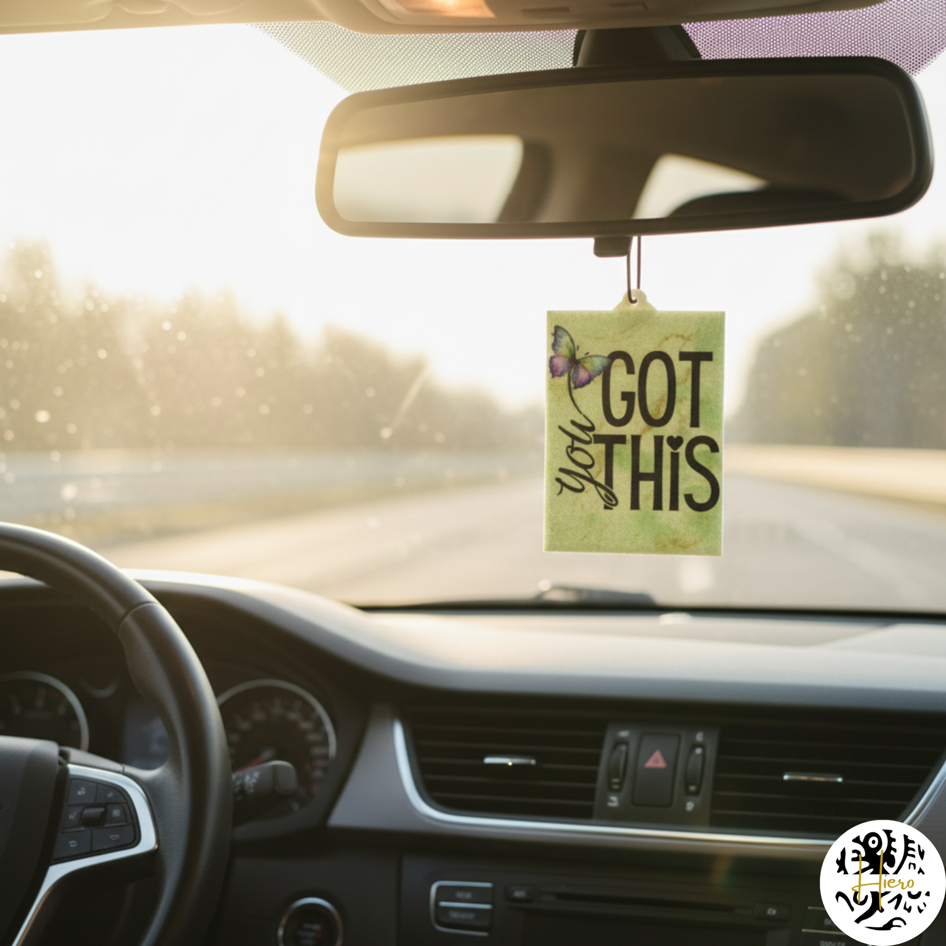 Give your car an upgrade with this fully customizable double-sided air freshener! Whether it’s inspiring quotes, family portraits, or any design you dream up, both sides showcase your unique style.