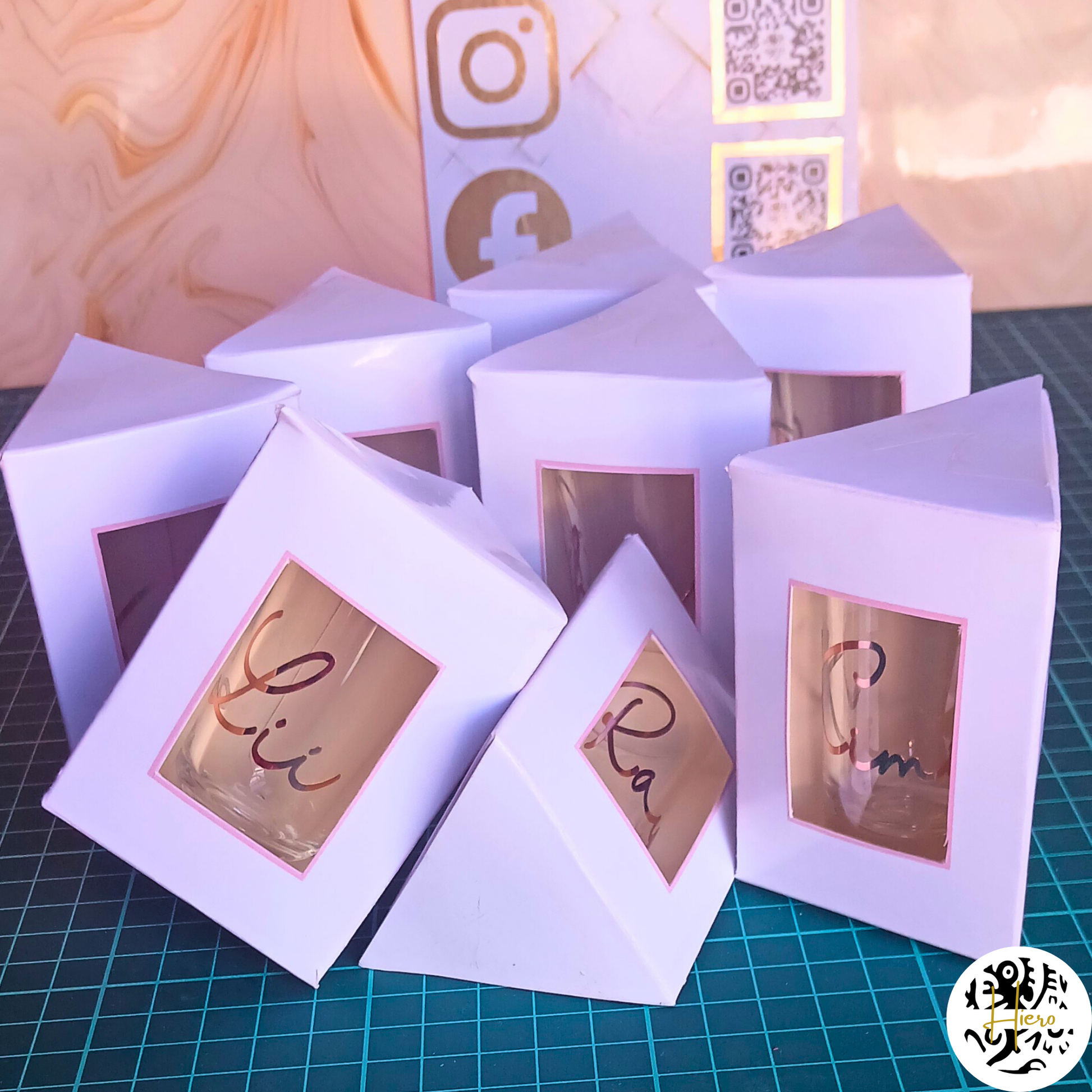 Celebrate in style with our custom shot glasses. These shot glasses can have your custom design including names or logos.