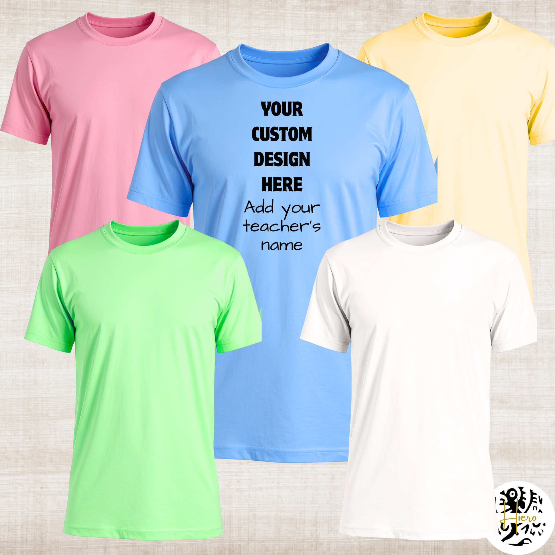 Send order specifications including colour, size and design theme and colour scheme to hierocreative.bb@gmail.com. You can also add the teacher's name.